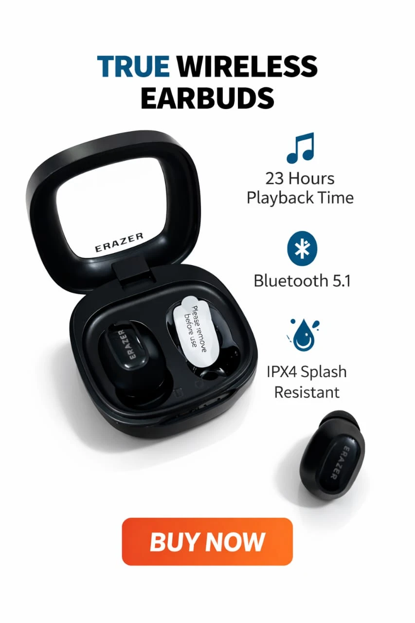 ERAZER Compact True Wireless Earbuds – Pink Edition